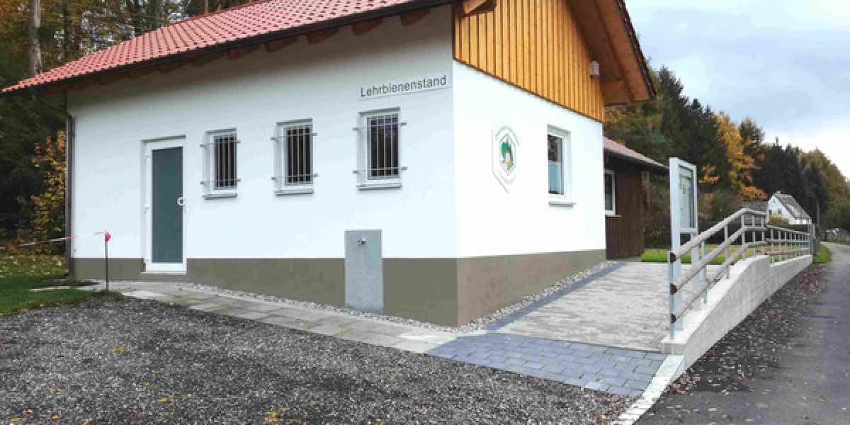 Da sich im Verlauf der letzten Jahre gezeigt hat, dass die räumlichen Kapazitäten für die Aus- und Weiterbildung von Imkern nicht mehr der Nachfrage entsprechen und auch Informationsveranstaltungen (Schulklassen, Kindergärten, Behinderten-einrichtungen, Ferienprogramm, ...) aufgrund der räumlichen Gegebenheiten nur eingeschränkt durchgeführt werden können, haben wir im April 2018 mit dem Erweiterungsbau begonnen. Außerdem wurden Gerätschaften zur Grünlandpflege angeschafft. Zum Lehrbienenstand gehören immerhin 2.500 m² Grünfläche. Die Grünfläche besteht im südlichen Teil aus einer Wildblumenwiese, die einmal jährlich gemäht wird. Ein Teil ist mit der durchwachsenden Silphie (Silphium perfoliatum) als Bienenweide angeplanzt.